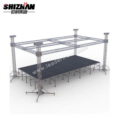 Nosači pozornice za rasvjetu događaja također se nazivaju aluminijskim krovnim rešetkastim sustavom pozornice, struktura je izrađena od aluminijske pozornice, aluminijske rešetke, LED svjetala, zvučnih zvučnika i LED zida.